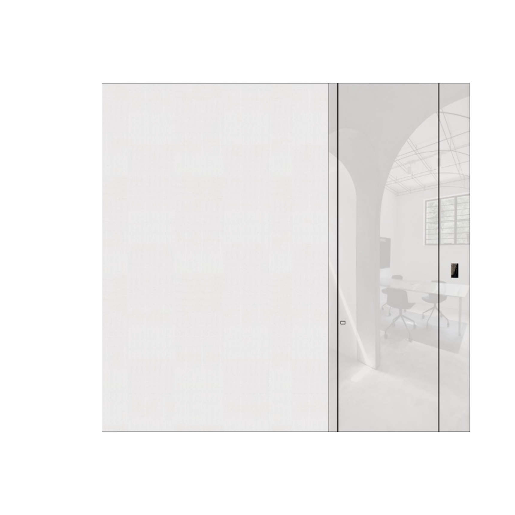 以镜面不锈钢为画布,覆以彩釉玻璃超白晶钻。镜面不锈钢玻璃,是世界的反射与自我的审视,我们以极致冷冽的镜面,重构门与环境的对话。它矗立在规则与自由的边界,门外反射世界,门内照见自我。