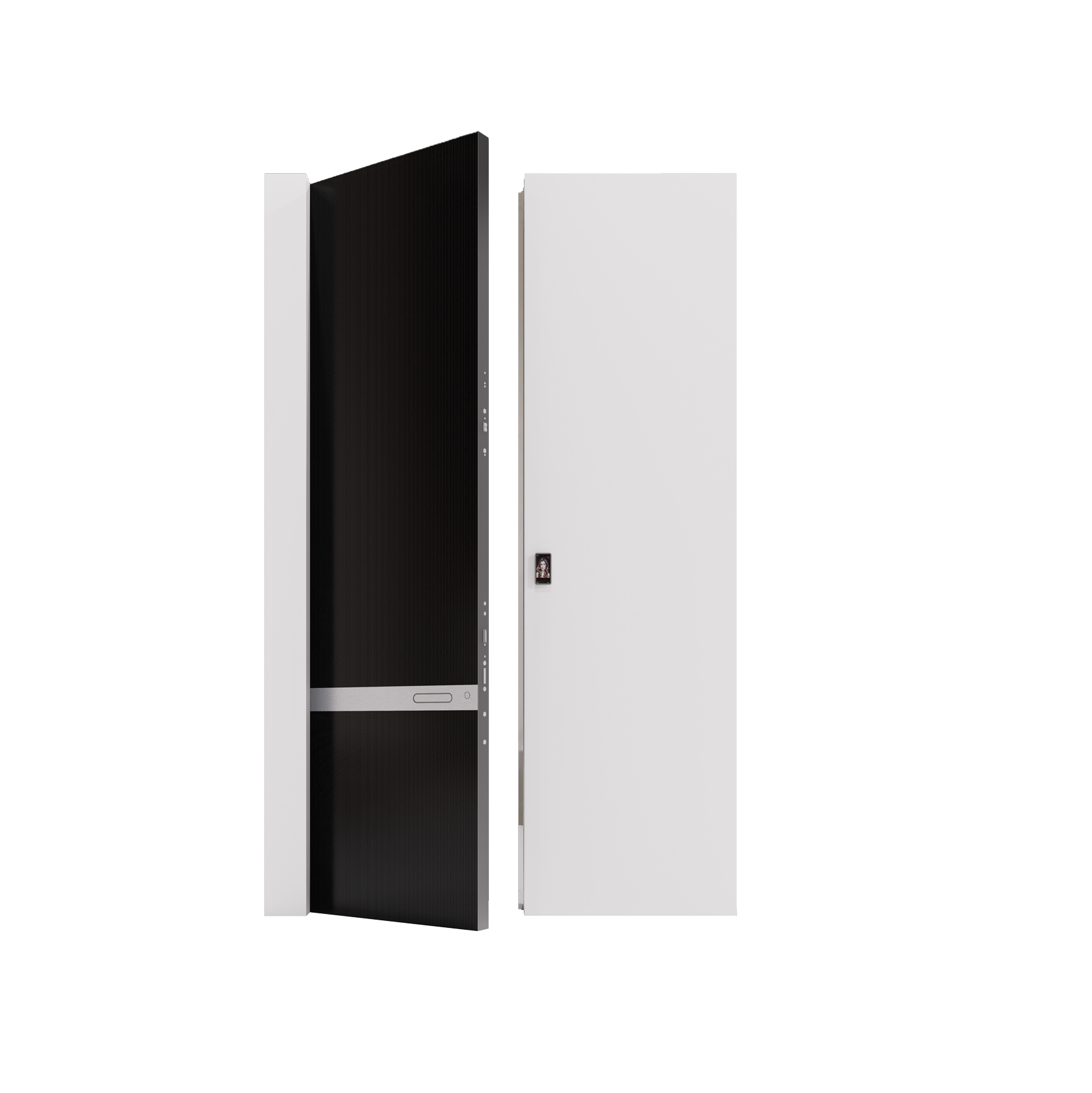 以镜面不锈钢为画布,覆以彩釉玻璃超白晶钻。镜面不锈钢玻璃,是世界的反射与自我的审视,我们以极致冷冽的镜面,重构门与环境的对话。它矗立在规则与自由的边界,门外反射世界,门内照见自我。